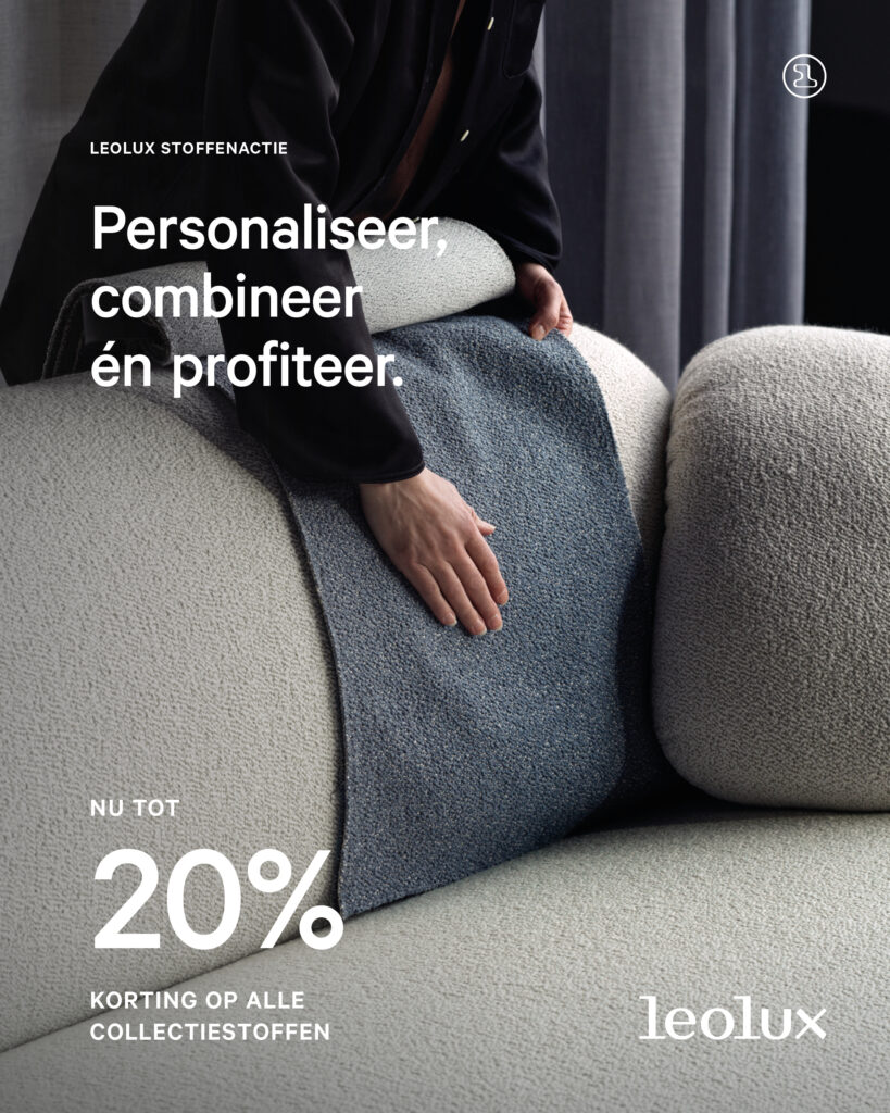 Met deze actie is het de perfecte tijd om dat droommeubel samen te stellen. Kom langs in onze showroom, laat u adviseren en ontdek alle prachtige stoffen en combinaties van Leolux en Pode.