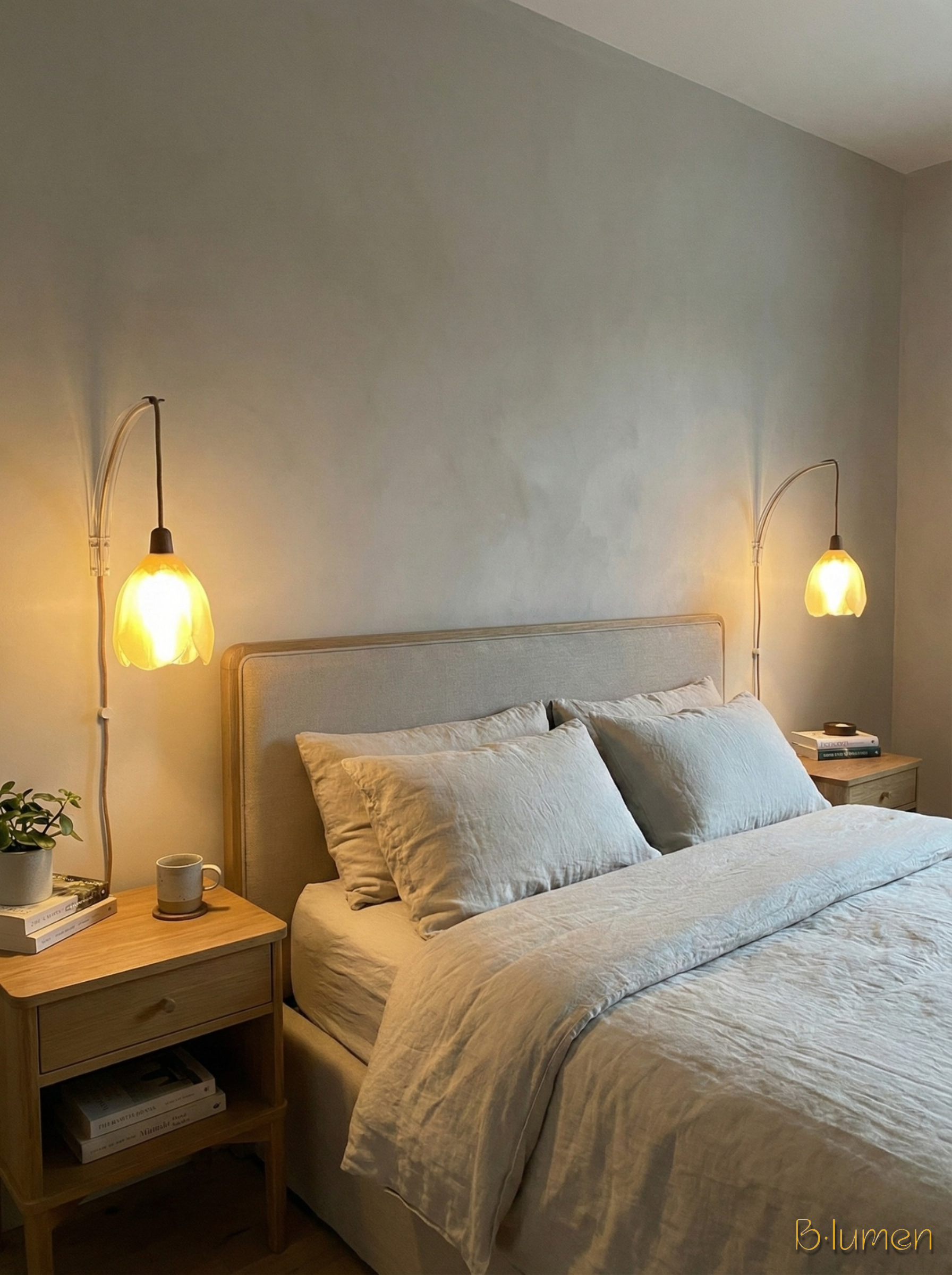 De combinatie van witte doorschijnende bloemblaadjes en een houten lamphouder representeert onze B-natural collectie; verfijnd en sierlijk, met natuurlijke flamboyantie.