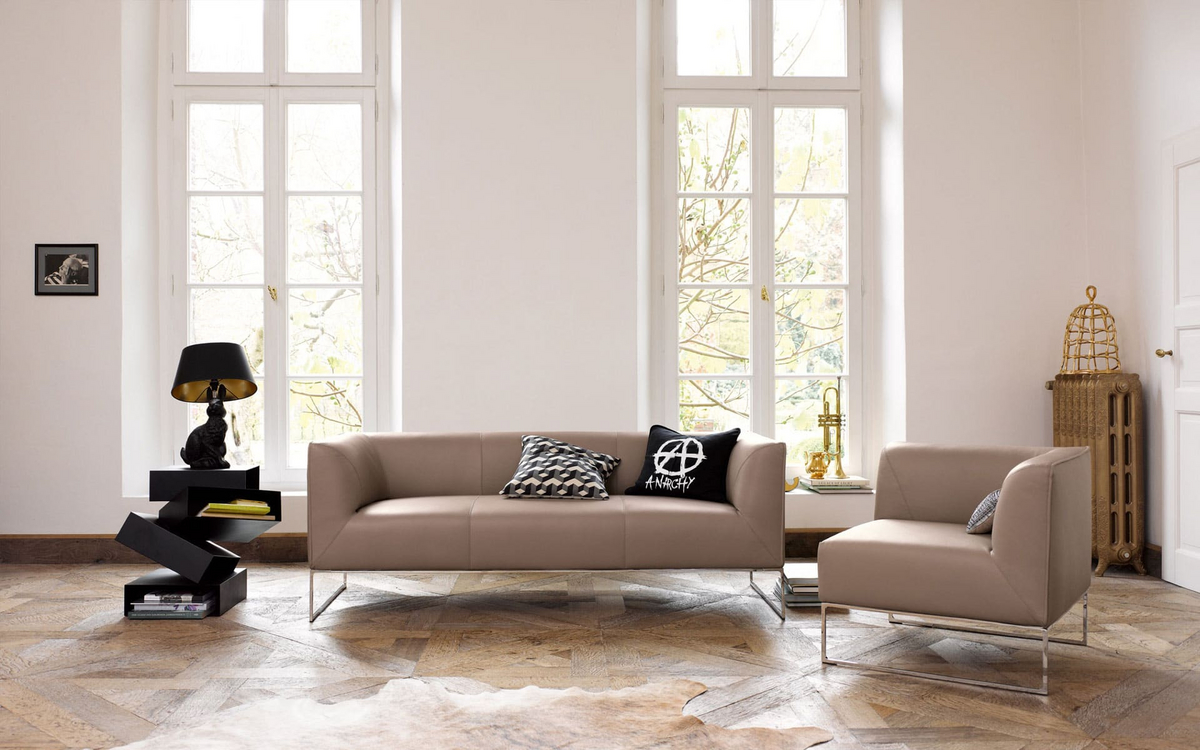 Mell staat voor opgeruimde elegantie zonder in te leveren op comfort. De strakke buitenlijnen contrasteren met een zachte, ronde binnenkant. Of je nu kiest voor een veelzijdige zitopstelling of de compacte high‑back variant met losse kussens: Mell oogt altijd licht en bijna zwevend dankzij het verfijnde metalen frame.